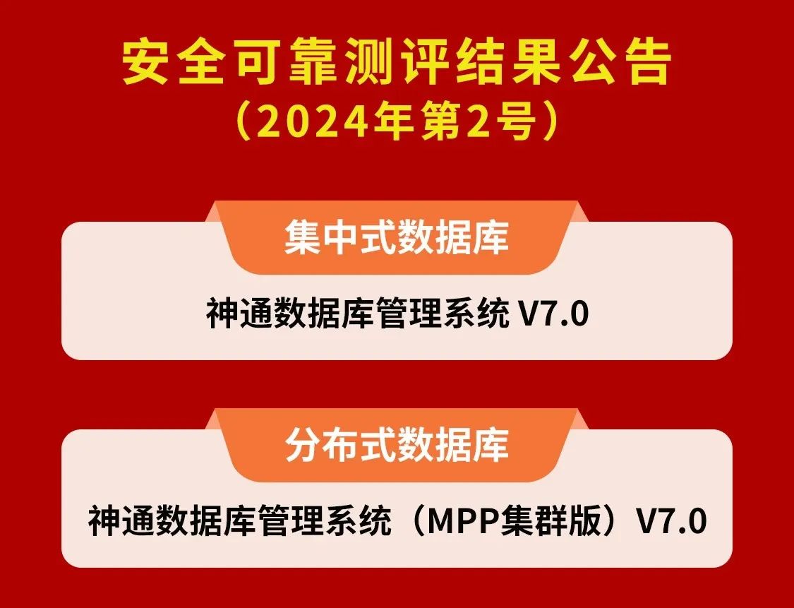 神通數據庫新版本通過安全可靠測評!